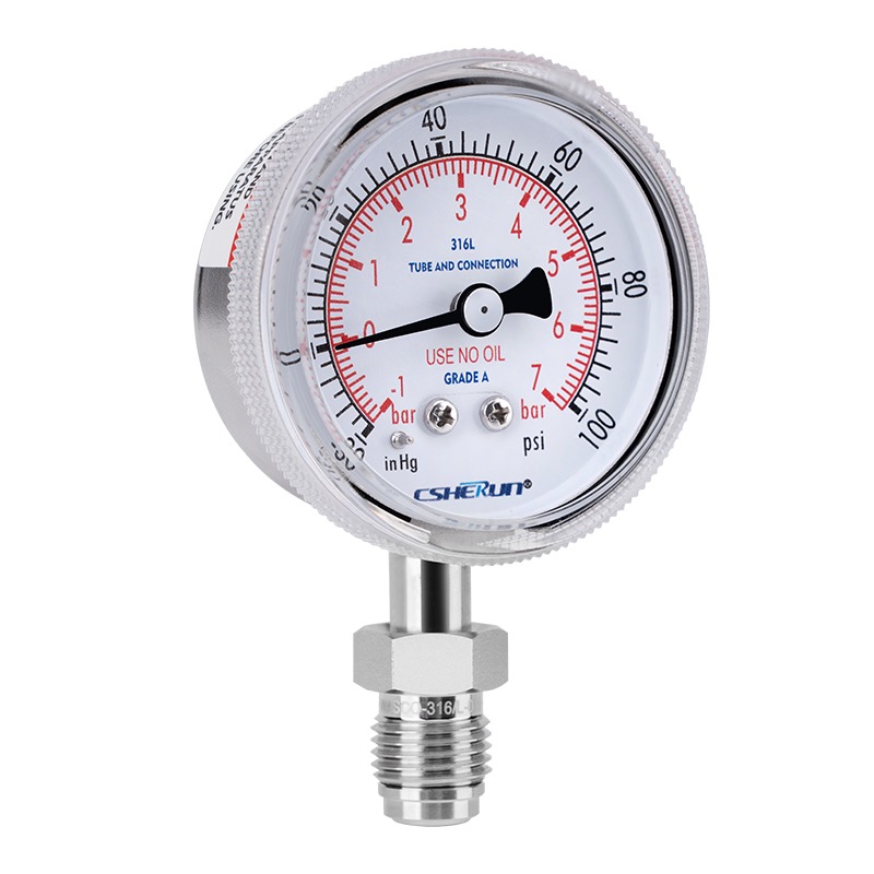 Kombinationen av den kinesiska CSHERUN VCR 1/4 manliga ansiktstätningssviveln och UPG50-VP/AP-F-L/C tryckmätare erbjuder en